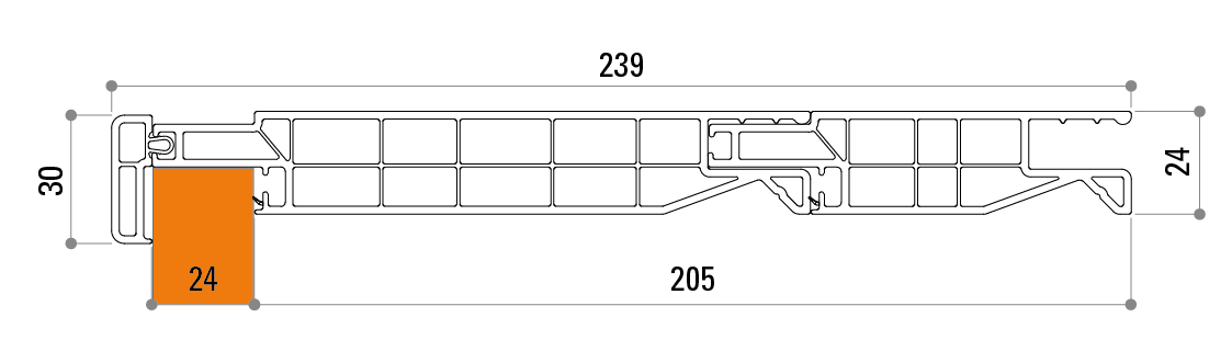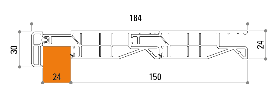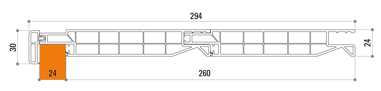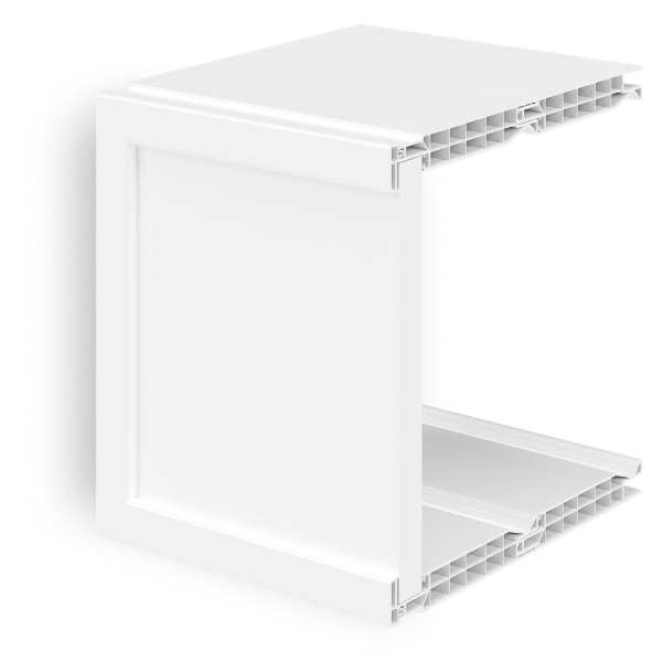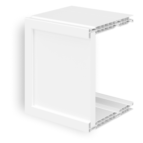 Cassonetto vano avvolgibili realizzato in PVC modulare di nuova concezione con pannello-coperchio da 24 mm di spessore.
